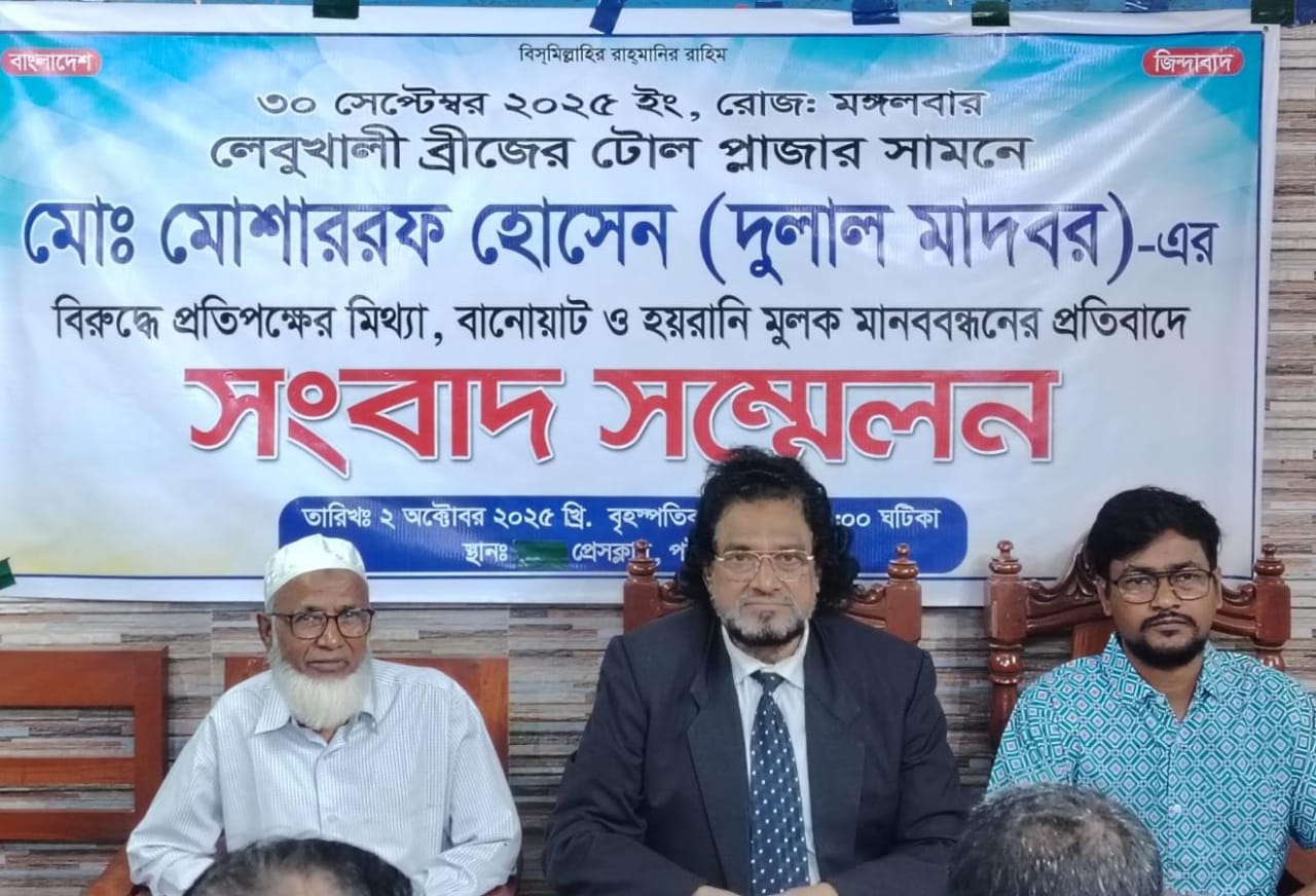 লেবুখালী ব্রিজ টোল প্লাজার সামনে আয়োজিত মানববন্ধনে তার বিরুদ্ধে উত্থাপিত অভিযোগকে ভিত্তিহীন বলে প্রত্যাখ্যান করেছেন মোঃ মোশাররফ হোসেন দুলাল মাদবর (৬৮)। মঙ্গলবার এক সংবাদ সম্মেলনে তিনি দাবি করেন, বিতর্কিত জমি তার ভগ্নিপতি ও বেয়াইদের দীর্ঘদিনের পৈত্রিক সম্পত্তি হলেও প্রভাবশালী কয়েকজন স্থানীয় আওয়ামী লীগ নেতা ক্ষমতার প্রভাব খাটিয়ে অন্যায়ভাবে নিজেদের নামে বি.এস রেকর্ড করিয়েছেন।
