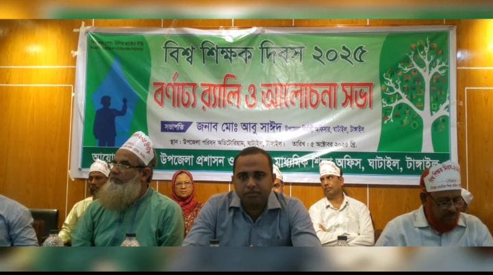 টাংগাইল জেলার ঘাটাইল উপজেলায় বিশ্ব শিক্ষক দিবস পালিত হয়েছে। বিশ্ব শিক্ষক দিবস উপলক্ষ্যে ৫ অক্টোবর রবিবার সকাল ১০ঃ০০ টার দিকে উপজেলা অডিটোরিয়ামে নির্বাহী অফিসার মোঃ আবু সাঈদ সাহেবের সভাপতিত্বে বর্ণাঢ্য