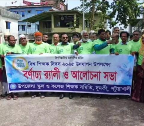 পটুয়াখালী জেলার দুমকী উপজেলায়,বিশ্ব শিক্ষক দিবস উপলক্ষে বর্ণাঢ্য র্যালি ও আলোচনা সভা অনুষ্ঠিত হয়।