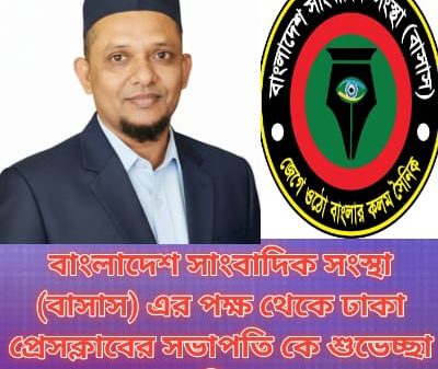 বাংলাদেশ সাংবাদিক সংস্থা (বাসাস)-এর পক্ষ থেকে ঢাকা প্রেসক্লাব সভাপতি কে শুভেচ্ছা ও অভিনন্দন বিশেষ প্রতিনিধি: বাংলাদেশ সাংবাদিক সংস্থা (বাসাস)-এর পক্ষ থেকে ঢাকা প্রেসক্লাবের সভাপতি আওরঙ্গজেব কামালকে আন্তরিক শুভেচ্ছা ও অভিনন্দন